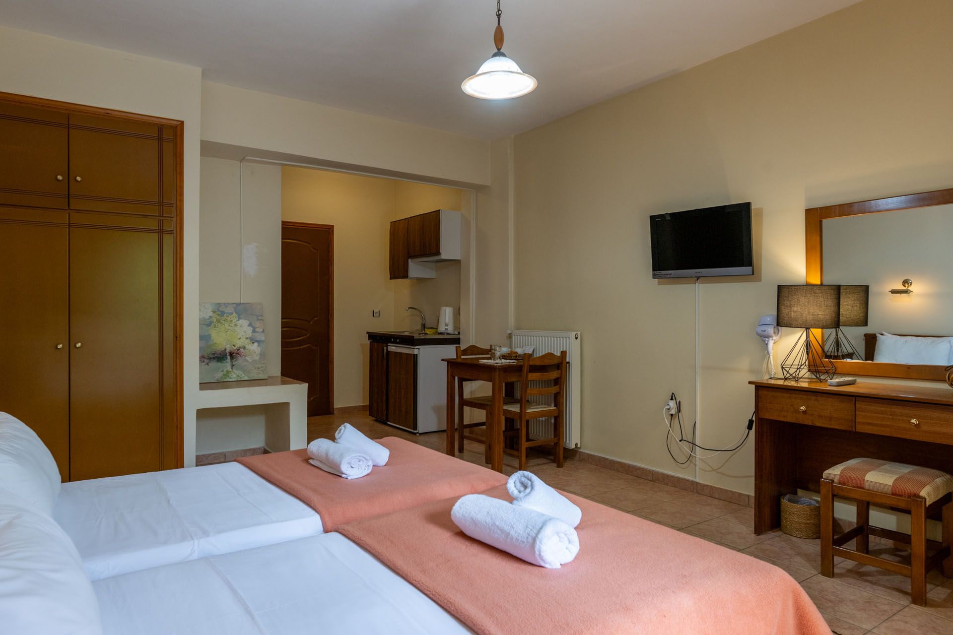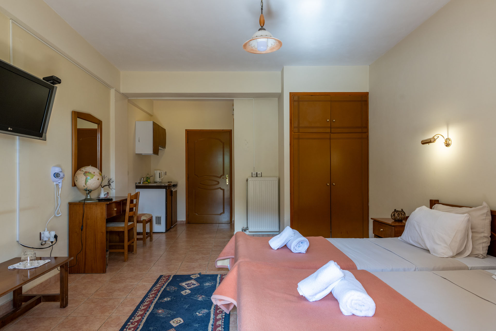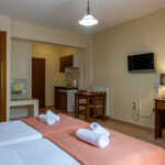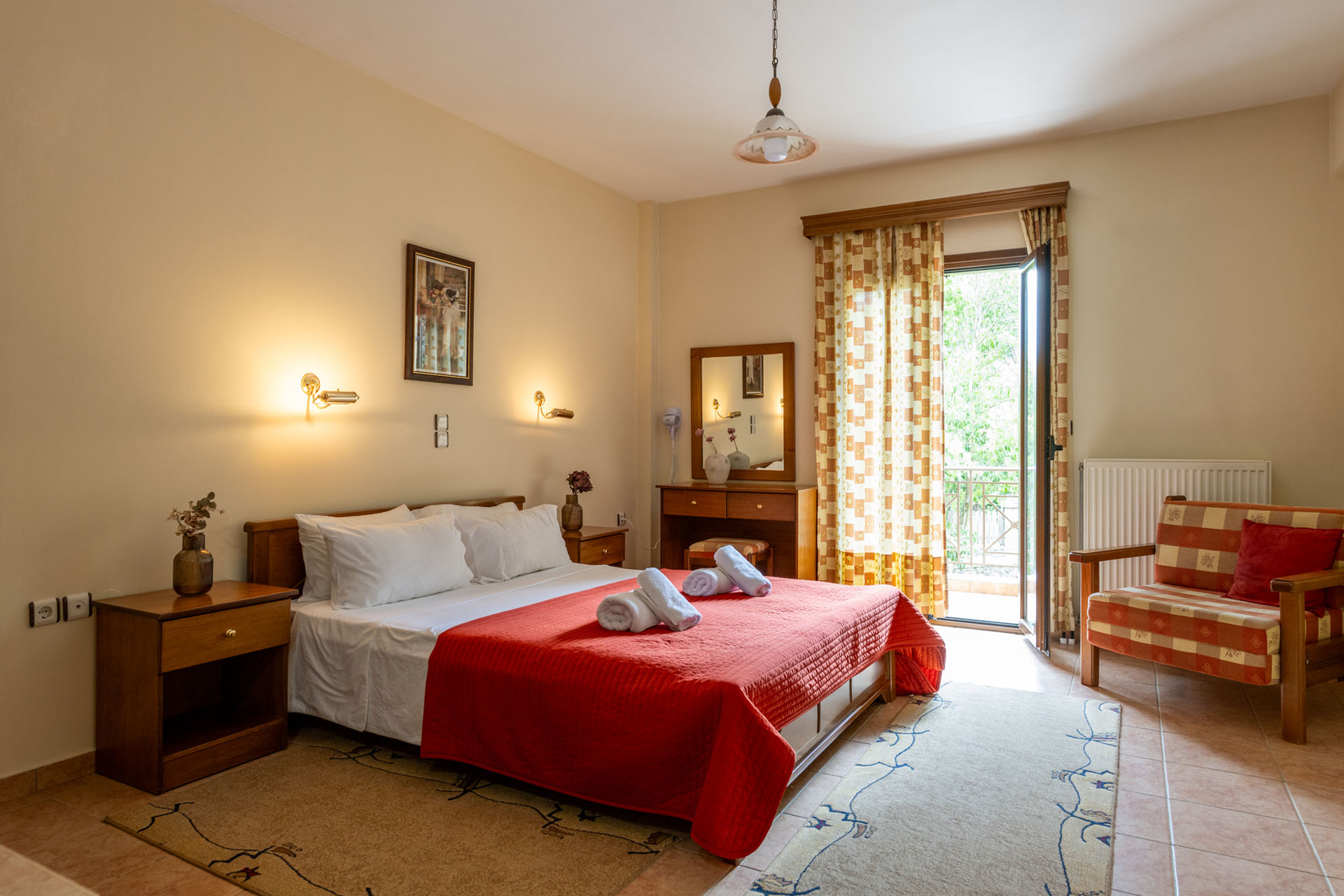 Welcome to our spacious double room at Achais Hotel, where comfort meets breathtaking views of the surrounding mountains and the charming village of Planitero. As you step into our elegantly furnished room, you’ll immediately be greeted by a sense of tranquility and warmth. The room features a comfortable bed adorned with crisp linens and plush pillows, inviting you to unwind and relax after a day of exploration. Large windows offer panoramic views of the majestic mountains of Mount Helmos and the idyllic village, providing a picturesque backdrop to your stay. In addition to the stunning views, the room is equipped with modern amenities to ensure a comfortable and convenient experience. A spacious en-suite bathroom offers a luxurious shower and complimentary toiletries, while a cozy seating area provides the perfect spot to enjoy a morning coffee or evening glass of wine. Whether you’re seeking a romantic getaway or a peaceful retreat in nature, our double room at Achais Hotel offers the perfect blend of comfort and serenity for an unforgettable stay.